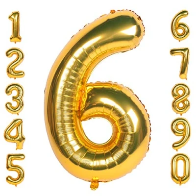 Gold 6 balloons 40 Inch Giant Helium Foil Number 0 to 9 Gold Balloon Birthday Wedding Party Digital Decorations (Number 6)