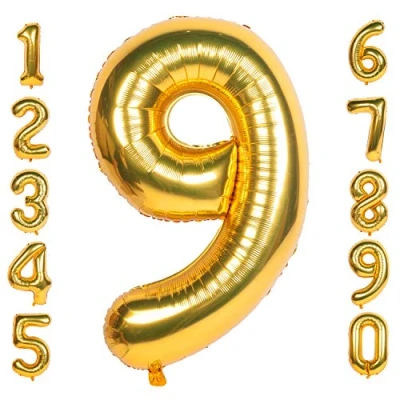 Gold 9 balloons 40 Inch Giant Helium Foil Number 0 to Balloon Birthday Wedding Party Digital Decorations (Number 9)