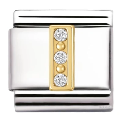 GOLD AZ Letter Italian Charm 9mm Golden Steel Bracelet Link with Cubic Zirconia Initial, Fits Modular Stretch Bracelets, Alphabet Jewellery Gift (I charm)
