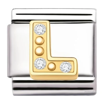 GOLD AZ Letter Italian Charm 9mm Golden Steel Bracelet Link with Cubic Zirconia Initial, Fits Modular Stretch Bracelets, Alphabet Jewellery Gift (L charm)