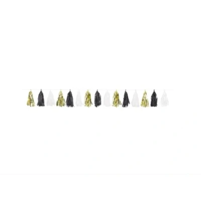 TISSUE TASSEL GARLAND: Impress your guests with this elegant and eye-catching gold, black & white tissue tassel garland, an exquisite addition to your party décor and celebrations. GOLD, BLACK & WHITE DESIGN: With its vibrant blend of gold, black & white tassels, this garland brings a touch of sophistication and flair to any event, matching a variety of themes and color schemes. IMPRESSIVE LENGTH: Spanning 2.7 meters, this tissue tassel garland is perfect for adorning walls, doorways, tables, and more, providing excellent coverage and effortless decoration. VERSATILE DECORATION: Ideal for weddings, baby showers, birthdays, anniversaries, graduations, and other special occasions, this stunning garland elevates the ambiance and is perfect for both indoor and outdoor use. EASY TO ASSEMBLE & REUSABLE: The gold, black & white tissue tassel garland is not only attractive but also simple to assemble, making it a reusable and cost-effective choice for your future celebrations and events., Manufacturer: Unique Party