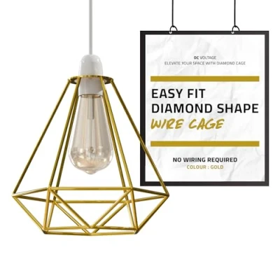 Design: The wire cage features a diamond design that enhances the illumination of the lights and brightens the room while effectively shielding the bulb from damage and providing a stylish accent. Material: The wire cage lampshade features a sturdy metal design that is resistant to rust, temperature changes, it suitable for ceiling-mounted lighting installations. It ensures long-lasting use. Dimensions: The diamond-shaped lamp shade measures 20cm in height and 14.5cm width, featuring a 4cm open hole for convenient access when changing the light bulbs, ensuring ease of use and maintenance. Installation: This lampshade offers a hassle-free installation process, requiring no wiring and can be easily attached to your current ceiling light socket, making it convenient for any home setup. Wide Application: Ideal for any space, this versatile item can be utilized in a range of locations including home offices, cafes, corridors and more, enhancing the environment wherever it is placed., Weight: 0.771617917 Pounds, Manufacturer: DC VOLTAGE