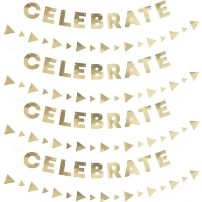 ELEGANT GOLD DESIGN: Add a touch of glamour and sophistication to your next event with our shimmering gold paper garland set, featuring the words "celebrate" in an eye-catching script to liven up any space. HIGH-QUALITY PAPER MATERIAL: Made with durable, eco-friendly paper, our garland set is lightweight yet sturdy, ensuring an exquisite decoration that lasts throughout your entire celebration without losing its lustre. PERFECT FOR ALL CELEBRATIONS & EVENTS: Whether it's a birthday party, graduation, wedding, anniversary, or any special occasion, our dazzling garland ensures your venue shines bright and becomes the talk of the town. EASY TO USE AND ASSEMBLE: No need for any tools or expertise! Our gold "celebrate" paper garland set comes ready-to-hang with a hassle-free setup process, so you can create your perfect party atmosphere in no time. BOOST YOUR PARTY DECOR & IMPRESS GUESTS: GIve your celebration that extra wow factor while capturing unforgettable memories with the help of our gold "celebrate" paper garland set. Stand out from the crowd and let your event truly shine., Manufacturer: Unique