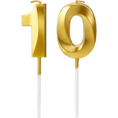 🔟DIGITAL CANDLES: Our digital candles are designed to replace traditional candles. Instead of counting the amount of candles, these digital candles can decorate your birthday cake easily and intuitively. 🔟PREMIUM MATERIAL: Our digital candles are made of premium paraffin, which is smoke-free, safe and environmentally friendly. 🔟DELICATE APPEARANCE: Our gold candles use advanced technology, which makes them look three-dimensional just like the cut surface of diamonds. 🔟DETAILS: 2 birthday candles with "1" and "0" are included in the package, 11.5 cm total length and 4.8 cm digit part length. 🔟SATISFACTION GUARANTEE: If you have any questions about our digital candles, please contact us and let us know, we will solve your confusion as soon as possible.