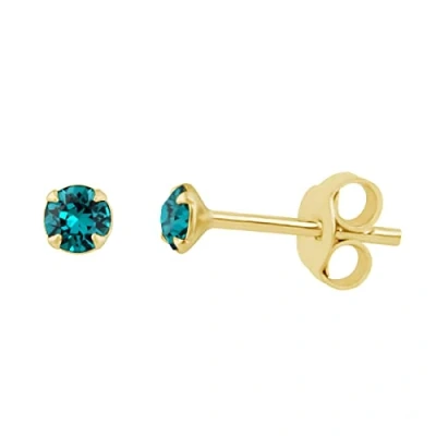 Gold Dipped Sterling Silver Blue Zircon 3mm CZ Crystal Claw Set Stud Earrings