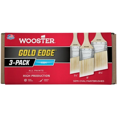 Gold Edge Semi Oval Angle Sash 3 Pack Brush Set Wooster