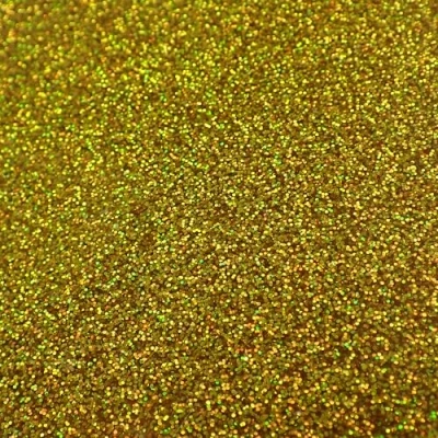 Gold Holographic Glitter Cast Acrylic Sheet (3mm thick) Cuts easily with a laser cutter, saw or mill Available in sizes from 150x125mm up to full sheets of 1000x600mm 3mm thickness makes it suitable for all manner of jewellery, craft and display projects Supplied with protective film on both sides to preserve its high gloss finish