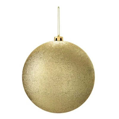 Traditional large bauble Striking Gold colour tones Gold hanging thread Glitter finish Diameter: 20 cm