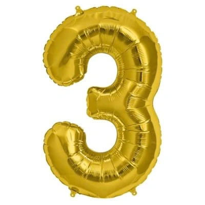 Gold Number 3 Large Helium Foil Balloon Birthday Party Wedding Anniversary Decoration 101cm (2 Pack)