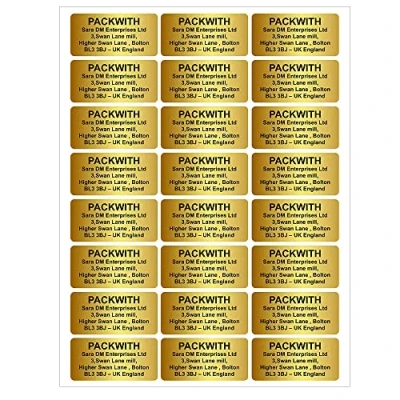 Gold Personalised Address Labels 24 Per Sheet A4 (64 x 33 mm) Stickers Business for Envelopes, Parcel Bags & Return Packwith®