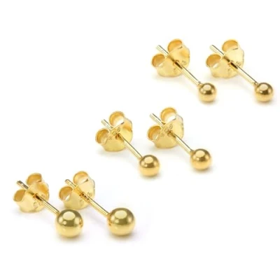 Gold Plated Small Sterling Silver Ball Stud Earrings Set 2mm 3mm 4mm