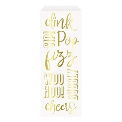Gold Pop Fizz Clink Paper Booze Bottle Bags (15cm x 22cm) Elegant & Stylish Gifting Solution for Bottles 3ct
