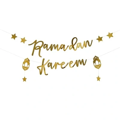 'RAMADAN KAREEM' BANNER - Add a touch of elegance to your Ramadan celebrations with this stunning gold "Ramadan Kareem" card banner. The shimmering gold lettering brings a festive yet sophisticated atmosphere, perfect for decorating your home, iftar gatherings, or prayer spaces. Measuring 2 meters in length, this lightweight yet sturdy banner is easy to hang and instantly elevates your décor. FESTIVE TOUCH - This set of two banners ensures your space is beautifully adorned for the holy month. Whether hung across a mantle, above a dining table, or as a backdrop for special moments, the classic gold finish blends seamlessly with any décor. Reusable and versatile, it’s a must-have addition to your Ramadan decorations. MEASUREMENTS - 2 x 2m string one for each word RAMADAN - See our matching range of Ramadan and Eid products SHARE WITH US - Tag us at @luckandluckshop with your creation. We love to see our products in use., Weight: 0.13668660244 Pounds, Manufacturer: Club Green