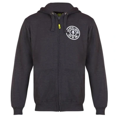 Gold's Gym GGSWT156 Men's Zip Through Sweater Hoody Printed Hooded Sweatshirt Hoodie, Charcoal Marl, S
