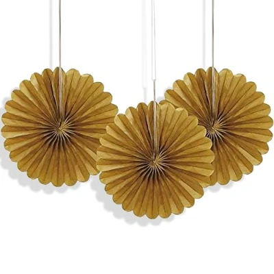 Gold Solid Tissue Paper Fans (15cm) 3 Pieces Vibrant Hanging Decorations for Parties & Events