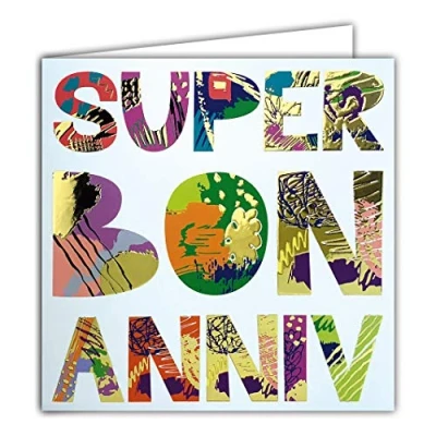 Gold Square Card Large Text Super Bon Anniversary