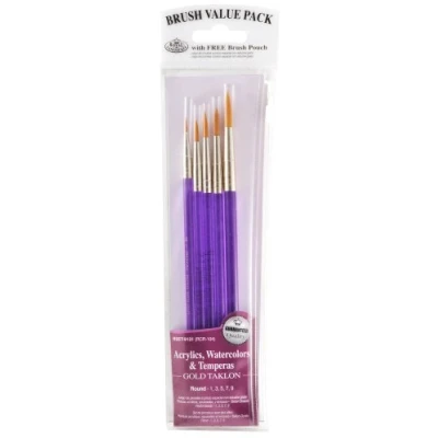 Gold Taklon Value Pack Brush Set 5/Pkg, Painting Tools