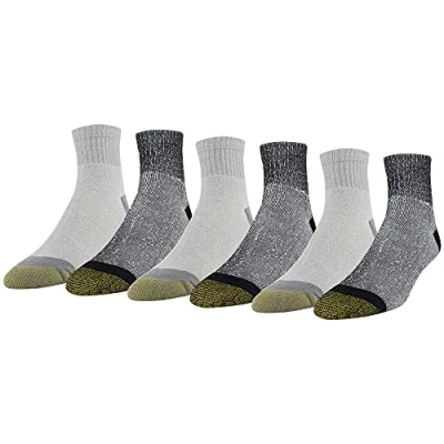 Gold Toe Men's 656p Cotton Quarter Athletic Socks, Multipairs Black/Grey (6 pairs), L UK