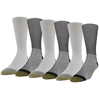 Gold Toe Men's 656s Cotton Crew Athletic Socks, Multipairs, Black/Grey (6 Pairs), Large (Pack of 6)