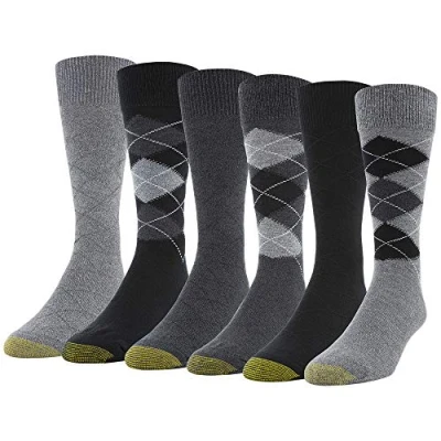 Gold Toe Men's Campbell Argyle Crew Dress Socks, 6 Pairs, Grey Marl/Black, Large (Pack of 6)