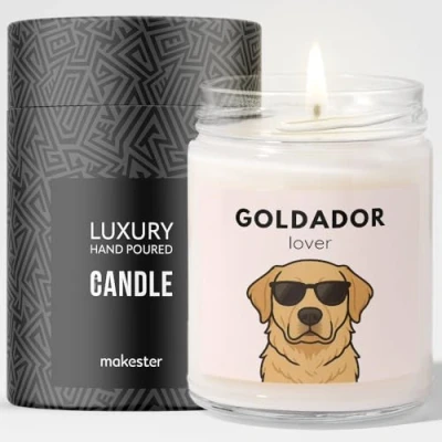 Goldador Gifts Luxury Soy Wax Candle Vanilla, Jasmine, Sugared Almond Dogs in Shades Makester