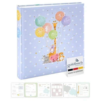 goldbuch 15 403 Baby Album Balloon Party, Book 30 x 31 4 cm, Photo with 58 White Blank Pages and Illustrated Pages, Art Print Cover Animal Motif, Album, Book, Blue