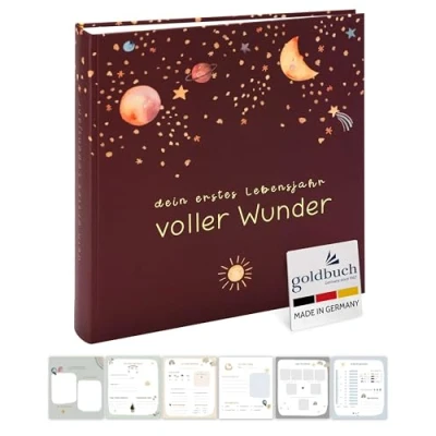 goldbuch 15 496 Baby Album Full of Wonders in Space Design, Linen Texture Photo with 58 White Blank Pages, Glassine & 4 Illustrated Album, Paper, Approx. 30 x 31 cm, Terracotta
