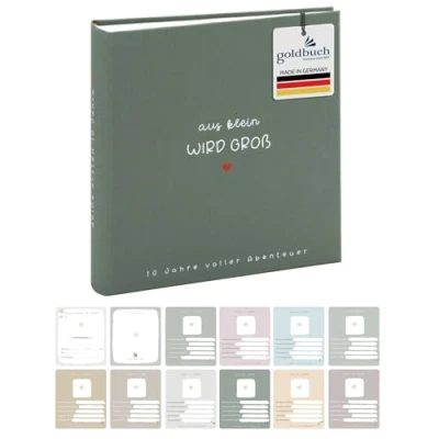 goldbuch 31043 Photo Album "Aus klein wird GROß", Book with 100 White Pages Glassine Dividers, Linen Cover, up to 600 Pictures, High Quality Paper, Green, 30 x 31 6 cm