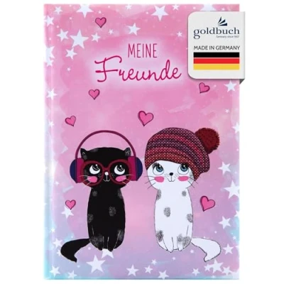 goldbuch 43099 Music for Cats A5 Fill in Friend Book Friends, Primary School, Nursery, Kita, 88 Illustrated Pages, Cover with Art Print, Laminated