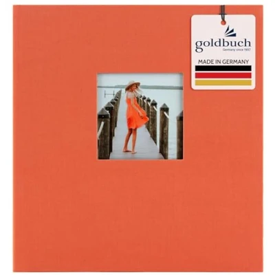 goldbuch Bella Vista 27 480 Photo Album with Picture Cut Out Salmon Memory 30 x 31 cm 60 White Pages Glassine Dividers Book Linen Cover in Orange