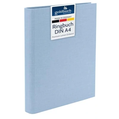 Goldbuch Bella Vista ring binder in a fashionable blue, linen cover, ideal for storing important documents or personal documents Sturdy ring book with a practical 4-ring mechanism and a clamping bracket, so that papers of all kinds can be stored easily and safely Easy to open and close the closure rings, great freedom of design, so you can quickly sort your files High-quality materials and careful workmanship reflect the quality standards and ensure long-lasting joy with the ring binder - quality made in Germany Goldbuch Ring binder A4 Bella Vista sky blue, folder with 4-ring mechanism and clamping bracket, colour: blue, material: linen, dimensions: approx. 32 x 27.5 x 4.5 cm, weight: 0.39 kg, item no. : 37729, EAN: 4009835377291