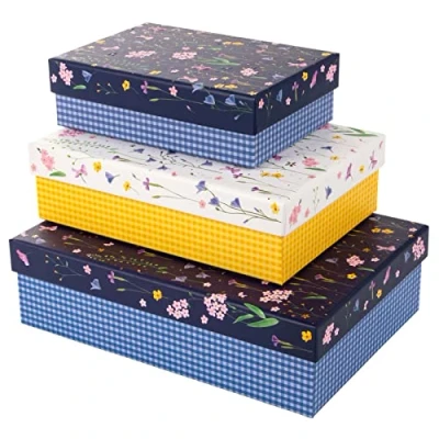 Goldbuch Meadow Miracles Cardboard Set, 3 Boxes, Large 18.5 x 26 7.5 cm, Medium 15.5 22 6.5 Small 12.5 18 5.5 Gift Box Set with Flower Motif