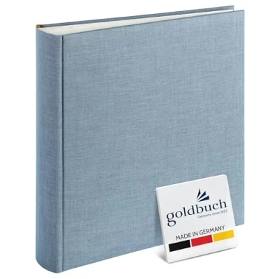 Photo album 100 white pages, space for approximately 600 photos in standard format 9 x 13 cm, ideal as a gift or as a keepsake on holiday Suitable for scrapbooking, use of all pens, blank pages for individual and personal design with photo glue and photo corners Quality: sturdy hard cover, high quality paper. Secure binding, Completed album will not expand. Made in Germany, prevents yellowing, sticking and swelling thanks to high-quality dividers made of glassine, e materials Box contents: 1 Goldbuch Summertime Trend 2 photo album, size: 30 cm x 31 cm; Number of pages: 100 white pages (50 sheets), material: Linen. Colour: 31607, Blue / Green