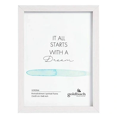 Goldbuch picture frame for 1 photo in picture format 15 x 20 cm from the Verona series, made of durable MDF wood, for framing and displaying portrait pictures and collages Ideal for filling thanks to smooth closures with pictures, favourite memories and holiday photos in portrait format. Can be hung on a wall in landscape or portrait format The high quality standards are reflected in the smooth wooden surface with a high-quality look. The wooden border serves as a decorative frame in a harmonious white colour Immortalise your most beautiful experiences and special occasions, such as weddings, births, Christmas or milestone birthday - fits perfectly into your room thanks to its classic design Goldbuch Wooden Picture Frame for 1 Photo, Portrait Frame, Series: Verona, Colour: White, Material: MDF, Dimensions: Approx. 16.5 x 21.5 x 1.5 cm, weight: 0.24 kg, item no. : 92 0704, EAN: 4045352927045