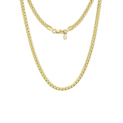 GOLDCHIC JEWELRY Gold Plated Box Chain for Men, 4MM Stainless Steel Strong Link Necklace 18inches