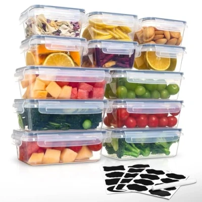BPA Free & Food Safe Made from high-quality, BPA-free plastic, these airtight food storage containers are safe for storing all types of food. Durable, reusable and easy to clean for everyday kitchen use. Complete 12-Piece Set Includes 12 rectangular containers: 6 x 1L and 6 x 520ml, each with matching lids. Ideal for portion control, meal prep and organising food storage at home. Airtight & Leakproof Seal Each container features a 4-clip locking system with a removable silicone ring to create a secure airtight seal. Helps keep food fresh and prevents leaks, moisture and odours. Airtight & Leakproof Seal Each container features a 4-clip locking system with a removable silicone ring to create a secure airtight seal. Helps keep food fresh and prevents leaks, moisture and odours. Stackable & Versatile Use Space-saving stackable design fits neatly in the fridge, freezer or cupboard. Perfect for storing meals, fruit, vegetables, salads, rice, pasta, snacks or leftovers.