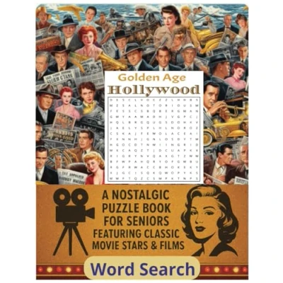 Golden Age Hollywood Word Search: A Nostalgic Puzzle Book for Seniors Featuring Classic Movie Stars & Films