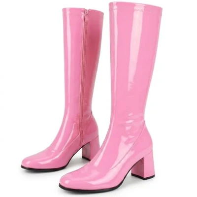 Golden Beads Ladies Womens Fancy Dress Party Go 1960s & 1970s Retro Look Girls Shoes Lady Costume Heels Boots Zip Closure In Patent Colors Mid Block 2.5inch(7 UK, Pink, numeric_7)