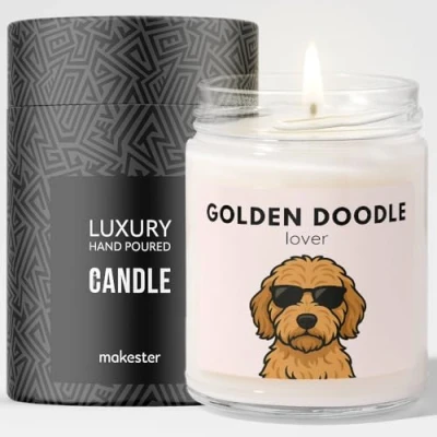 Golden Doodle Gifts Luxury Soy Wax Candle Vanilla, Jasmine, Sugared Almond Dogs in Shades Makester