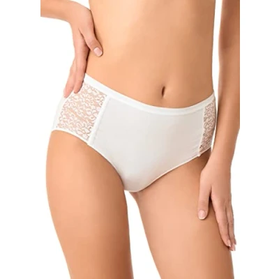 GOLDEN LADY Women's Cotton Lace Midi Classic Brief, White, L