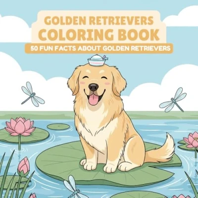 Golden Retrievers Coloring Book With Fun Facts: 50 Pages of Cute to Color and Learn Educational Animal for Kids adults Gift Dog Lovers