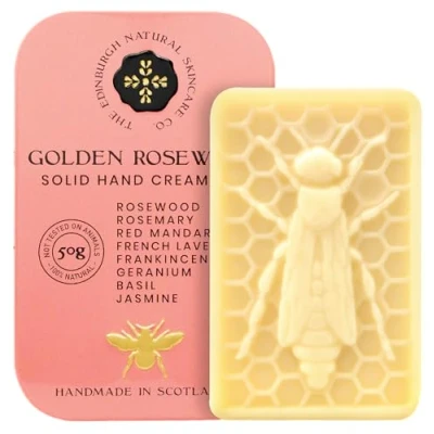 π LUXURY HAND CREAM BAR: This innovative hand cream comes in bars, the new way to keep supple hands all day. A new formula in a multi-tasking Solid Hand Cream Bar leaves your skin feeling wonderfully soft and nourished. πFOR DRY & SENSITIVE HANDS: Golden Rosewood contains notes of Rosemary, Red Mandarin, French Provencal Lavender, Basil, and Jasmine. πNO STICKY-RESIDUE & ANTI-AGEING: This hand cream bar leaves no sticky residue or grease on your skin. It helps fight the signs of premature ageing and help reduce the appearance of age spots and wrinkles on your hands with our hand cream bars. π 100% NATURAL & HANDMADE: Our hand cream bars contain no artificial colouring, preservatives, or fragrance oils. Handmade in the Garden of Scotland and not tested on animals. π PERFECT GIFT: Treat the one you love to a gift of pure luxury. A perfect gift for all occasions!