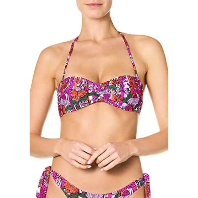 Hard-padded halter bikini top with a slightly padded mid-bust Removable shoulder strap and bow back closure Made from soft touch microfiber in floral pattern Matching clutch available The item is part of a bikini set. Bikini bottom is sold separately