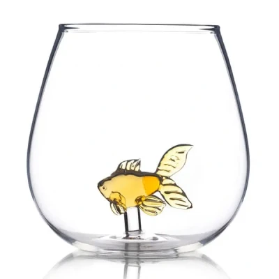 Add a splash of whimsy to your glassware collection with this charming Bar Bespoke Goldfish In A Glass. Featuring a handcrafted goldfish figurine nestled in the centre of the glass, this tumbler brings a light-hearted twist to your sipping experience, perfect for those who love quirky, conversation-starting pieces. The generous size and rounded shape of the bowl sits comfortably in your hand whilst enhancing the aroma of your drink.Whether you're hosting a summer garden party or simply enjoying a quiet drink, the Bar Bespoke Goldfish In A Glass tumbler adds a touch of fun and flair to any occasion.Made from glass with 3D goldfish in the centre.Hand wash in warm water. Not dishwasher safe.500ml capacity.