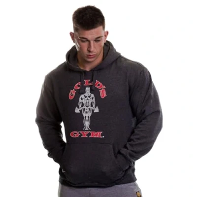 Iconic Gold's Gym 'Muscle Joe' printed on front Comfortable cotton-rich fleece fabric, brushed on the inside for optimal warmth Adjustable drawcord to the hood and deep front kangaroo pocket Ribbed cuffs and hem Lightweight and breathable