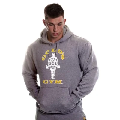 Iconic Gold's Gym 'Muscle Joe' printed on front Comfortable cotton-rich fleece fabric, brushed on the inside for optimal warmth Adjustable drawcord to the hood and deep front kangaroo pocket Ribbed cuffs and hem Lightweight and breathable