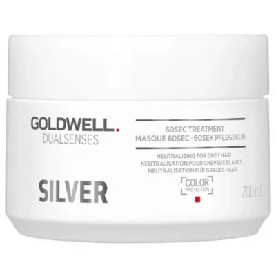 Brighten and revitalise your blonde, grey, or silver hair with Goldwell Dualsenses Silver 60sec Treatment 200ml, a fast-acting intensive mask that delivers stunning results in just 60 seconds. Designed to neutralise unwanted yellow and brassy tones, this powerful treatment restores cool vibrancy while deeply nourishing and strengthening the hair. Powered by microPROtec complex and purple pigments, it ensures even pigment distribution for immediate tone correction and long-lasting colour brilliance. Perfect for natural and colour-treated hair, this mask leaves your hair feeling healthier, smoother, and beautifully refreshed. Keep your blonde, grey, or silver hair looking vibrant, cool, and beautifully conditioned with the Goldwell Dualsenses Silver 60sec Treatment—your go-to mask for fast, flawless tone correction. Key Benefits: - Instantly neutralises yellow and brassy tones - Enhances silver, blonde, and grey shades for a cooler, brighter finish - Works in just 60 seconds for quick, salon-quality results - Deeply nourishes and softens dry or brittle hair - Boosts shine and smoothness for a radiant finish - Ideal for both natural and colour-treated hair