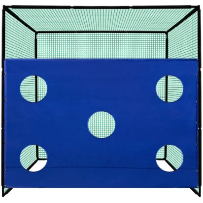 Golf Practice Cage 10ft 3m & 5 Hole Target Sheet Driving Range High Impact 25mm Mesh Hitting Swing Training Equipment Outdoor Freestanding Steel Frame Bullseye Artificial Grass Mat 6cm Tee