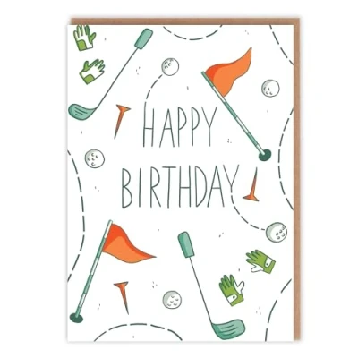 Golf Theme Birthday Card Illustrations of Golfing Essentials 'Happy Birthday' For Her Him