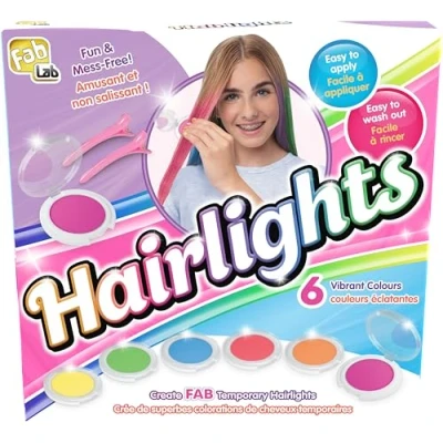 COLORFUL HAIR DRILLS KIT - EASY TO USE: This temporary hair dye set includes everything you need: hair chalks, gloves, clips and eco-friendly storage box with smartphone holder. A practical children's hairdressing kit perfectly suited for small hands. Change hairstyles into 1 risk free stroke: This non-permanent coloured hair set is perfect for children aged 8 and above. With temporary hair dye, change your look easily, safely. The hair chalk is applied in seconds and simply washes off with shampoo. 6 bright colours for a unique style: this hairstyle kit for coloured strands contains 6 children's hair chalks in bright shades (pink, blue, purple, orange...). Ideal for creating original strands or an ombre effect. This temporary hair dye allows you to follow all the trends without commitment. CREATIVE AND FUN ACTIVITY TO SHARE: FabLab Hairlights is a creative activity for children from 8 years old ideal to do alone or with friends. The illustrated guide allows you to have fun while learning to create a personalized style. A fun time to share during afternoons or parties. TRENDY GIFT IDEA FROM 8 YEARS: This temporary hair dye kit is the perfect gift for a child who loves fashion and colors. An original gift idea for a birthday, Christmas or as a fun and creative activity at home., Manufacturer: Goliath